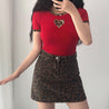 Make any boring outfit look 10 times better with a skirt like this. Decorated with a leopard print, this piece offers a high-rise silhouette with a buttoned waist with a zip and fly closure. The skirt has a bodycon silhouette and ends in a mini hem. Add this to your cart right away!