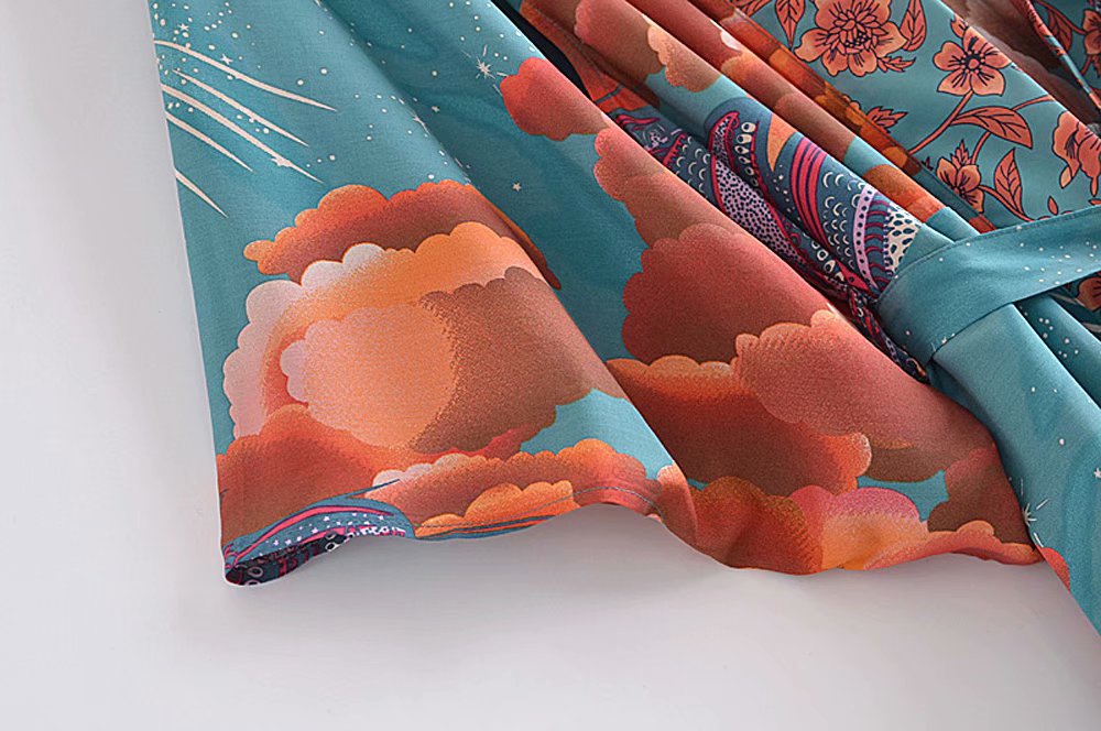 Feel the Calm in Our Green Kimono Robe Gown Beach Cover-Up!