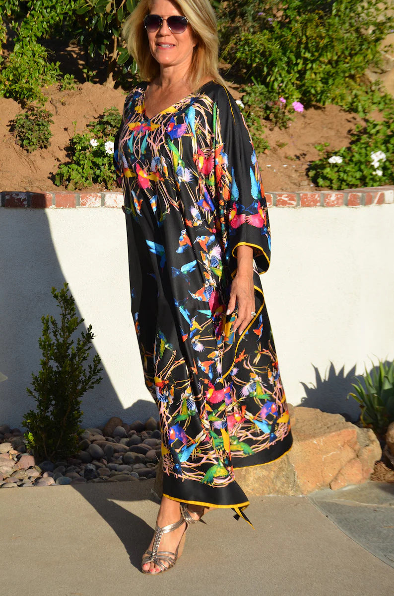 Made with long, elegant and silky fabric, this cover-up features beautiful floral prints that will make you feel like a bohemian goddess. Perfect for a day at the beach, this cover-up is sure to turn heads and make you stand out in the crowd. Embrace your inner free spirit and add a touch of luxury to your beach wardrobe.