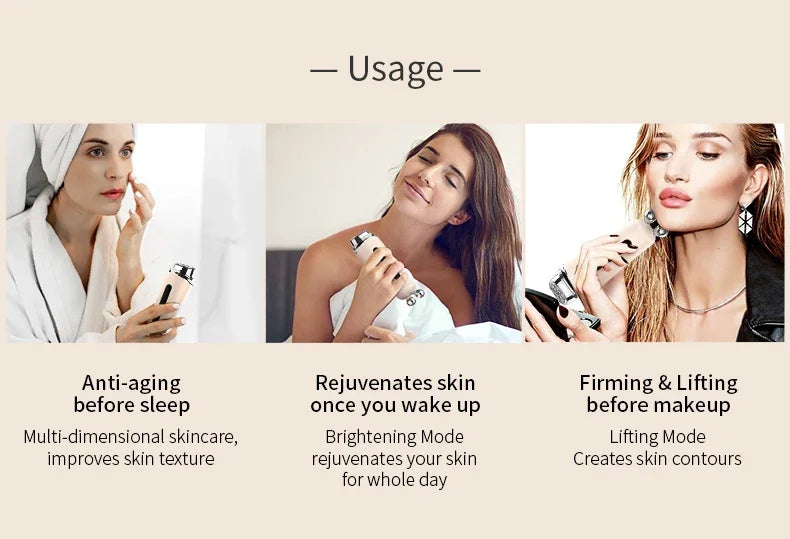 Revitalize your skin with our 3 in 1 Beauty Rejuvenating Device! This device combines face massage, EMS, and ultrasonic rejuvenation to give you a radiant, youthful glow. Say goodbye to wrinkles and dull skin, and hello to a revitalized, more confident you. Try it now and see the amazing results for yourself!
