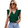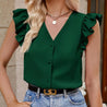 Embrace a touch of elegance and sophistication with our Ruffled Trim Button Front V Neck Top. With its ruffled trim and button front, this top exudes luxury and exclusivity. Perfectly crafted for the fashion-forward, it adds a touch of art and literature to your wardrobe. Whether you're dressing up for a special occasion or adding a touch of beauty to your everyday look, our Ruffled Trim V Neck Top is a must-have staple for every fashion-forward individual.