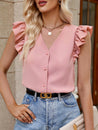 Meet Modern Beauty with Our Button Front Ruffled Sleeve Top!