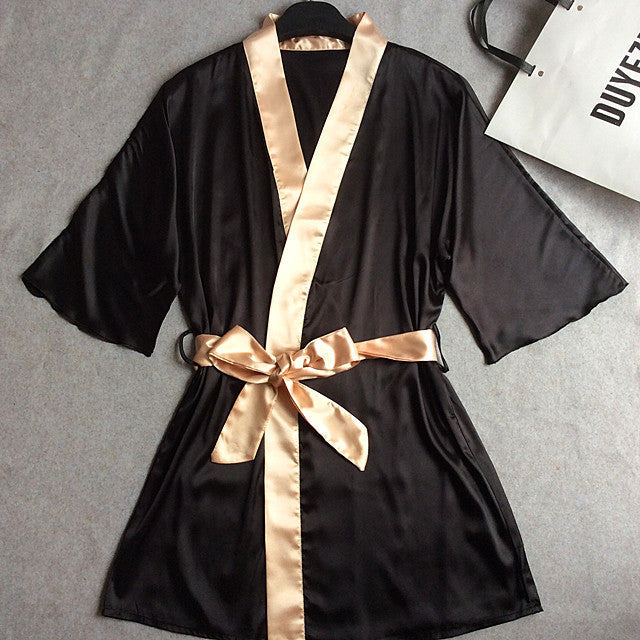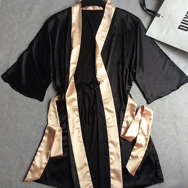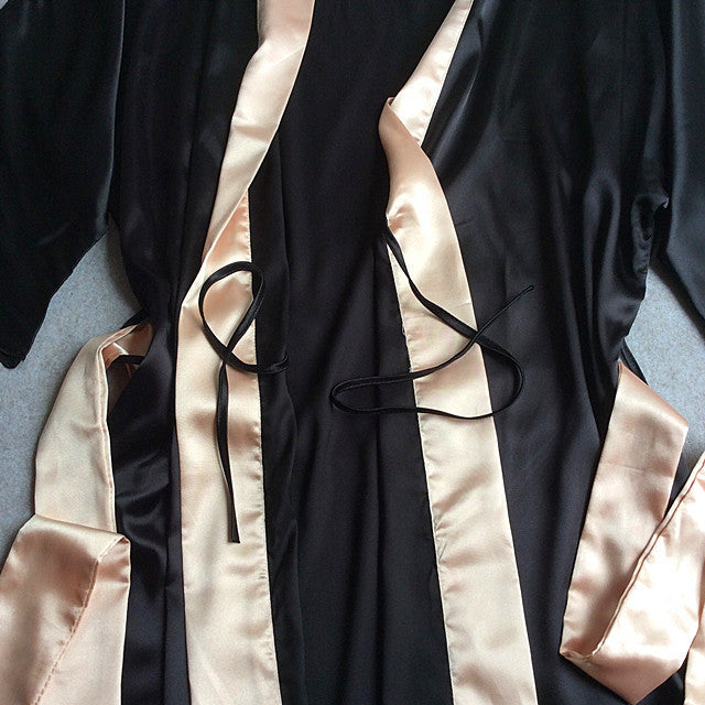 Made from the finest silk and satin, this robe will envelop you in a sense of indulgence. The elegant kimono design adds a touch of sophistication, making it perfect for lounging. Whether you're winding down after a long day or preparing for a special occasion, our silk satin kimono robe is the perfect choice. Its combination of silk and satin offers a luxurious feel against the skin, while its exquisite design adds a touch of glamour to your loungewear collection.