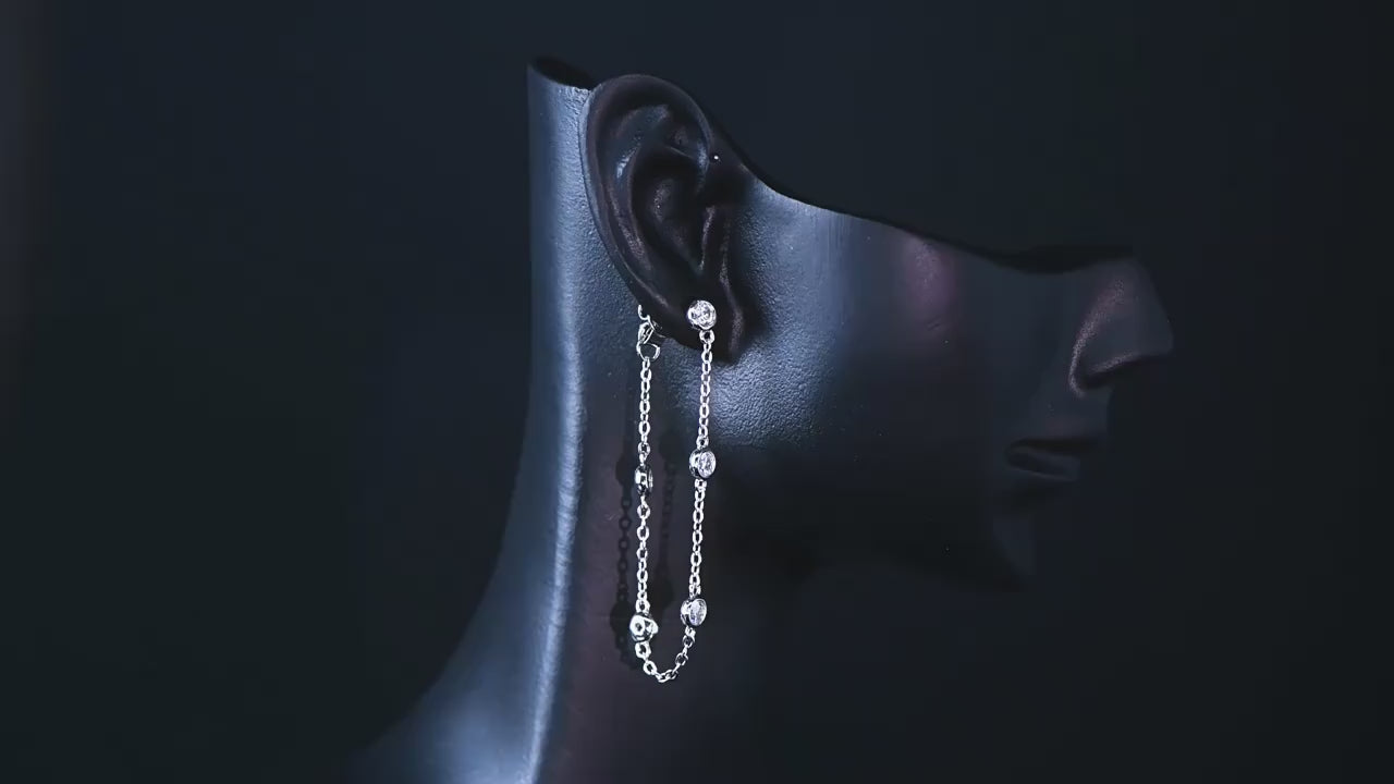 These GRA certified flawless moissanite earrings feature a stunning chain drop design, crafted from 925 sterling silver and 14K gold overlay. Their superior quality guarantees a timeless and elegant look, perfect for any occasion. Elevate your style with these expertly crafted earrings and add a touch of luxury to your jewelry collection.