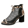 Introducing our Black Mesh High Heels Zipper Sandals, designed to blend elegance and modern fashion. Featuring a chic fish mouth design and a convenient back zipper, these sandals are perfect for any occasion. Available in both black and leopard print, they offer a stylish statement with every step. Crafted with high-quality mesh and a comfortable thick heel, these sandals are a must-have for your wardrobe.