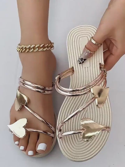 Radiate Style with Our Heart Shape Metallic Sandals!