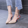 Step into elegance with our High Heel Pointed Toe Stiletto Strap Shoes. Designed with a unique and stylish aesthetic, these shoes provide both comfort and sophistication. Available in multiple colors and heel heights, they are perfect for any occasion. Crafted with high-quality materials, including a durable rubber sole and a comfortable PU inner lining, these shoes are a must-have addition to your wardrobe.