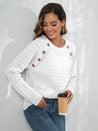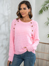 Always look a little cute while wearing this To The Beautiful You Long Sleeve Sweater. Made from 100% acrylic, this pretty sweater is available in both white and pink hue. Offering a slightly stretchy fit for the perfect look, this cute number is adorned with decorative buttons on the side. It includes a round neckline, long-length sleeves and a straight hemline. It has a pullover style for easy wear. Get yours today!