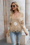 The Dressed To Chill Knit Sweater is here to stun them all. Designed with romantic floral motifs, it is characterized by a deep V-neck, long sleeves with drop shoulders and a relaxed fit. The distressed detailing at the ribbed edges adds another level of cool to this piece. Style with your favourite denim bottoms. Order yours today!