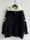 You'll reach new levels of style in the My Type Sweater. Warm and comfortable, the rib knitting gives it a fantastic fit, while the two-tone design lends a contemporary edge. It features a collared neck with a half zipper closure, long sleeves, drop shoulders and a relaxed fit. Don't miss out, and own this sweater now!
