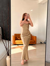 This dress features a delicate spaghetti strap design, a flattering sleeveless cut, and a stunning backless style that will make you feel elegant and sophisticated. Made with high-quality satin, this dress is perfect for any special occasion or event. Make a statement and stand out from the crowd in this effortlessly chic maxi dress.