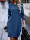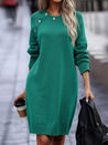 The comfortable crew neck and long sleeves ensure maximum warmth and style, while the oversized fit adds a touch of laidback glamour to your look. Whether you're dressing it up or keeping it casual, this must-have dress will elevate your cozy wardrobe to the next level!
