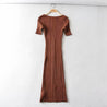 This stunning dress features a slimming design to enhance your curves and turn heads. Its short sleeves provide comfort and versatility. Feel confident and elegant in this wardrobe must-have. Experience confidence and elegance with the Celebrity Slim Design Dress.