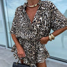 While on vacation, it is important to stay comfortable, which is why we believe this romper is the best pick. Crafted from luxe silk, it offers a very flattering fit. Splattered with a leopard print, this romper has a collared neckline with short sleeves and a button front bodice. The elasticized waist cinches in the fit before falling to relaxed short legs. Order yours today!