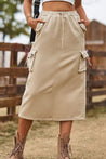 Denim skirts are the hottest 'it' item in the fashion scene, so make sure you have this Need More Drawstring Denim Skirt! Shaped from a blend of rayon, this denim skirt is available in various stylish hues. Featuring a drawstring waist for a customized fit, this denim skirt includes a midi length that leads to a straight hemline and a slight stretch for comfort. The side slit allows for ease of movement, and the pockets add a practical touch. Shop yours now!