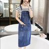 This trendy denim skirt with suspenders combines a classic style with a modern twist. The medium length is perfect for everyday wear while the suspenders add a fun and unique touch. Made with high-quality denim, this skirt is durable and comfortable. The high waist design and suspender straps add a touch of retro flair, while the hand-worn pocket and worn back strap detailing provide a unique and edgy look. Whether you're dressing for a casual day out or a chic evening event, this skirt is sure to make a statement.