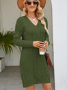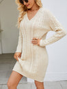 This cozy sweater dress brings both comfort and style to your wardrobe. The cable-knit design adds texture and charm, while the mini length and v-neckline offer a flattering silhouette. Perfect for a casual day out or a cozy night in.