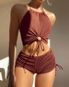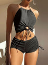 Featuring a halter neck for added support and style, and a flattering bikini suit design, this swimsuit is perfect for making a stylish statement at the beach or by the pool. Get ready to turn heads and feel confident in this must-have swimsuit!