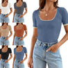 Enjoy everyday comfort with our Square Collar Basic Short Sleeve T-shirt. Made with a square collar design and comfortable short sleeves, this top is perfect for casual occasions and can be paired with any outfit for a stylish and effortless look. Upgrade your wardrobe with this versatile and all-matching top! Whether you're running errands or meeting friends for coffee, our Square Collar T-shirts are the perfect choice for easy, stylish dressing.