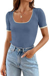 Find Comfort in Style with Our Square Collar Short Sleeve Top!