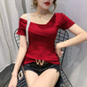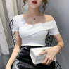 Get ready to turn heads this summer with our Summer Slim Diagonal Collar Top!