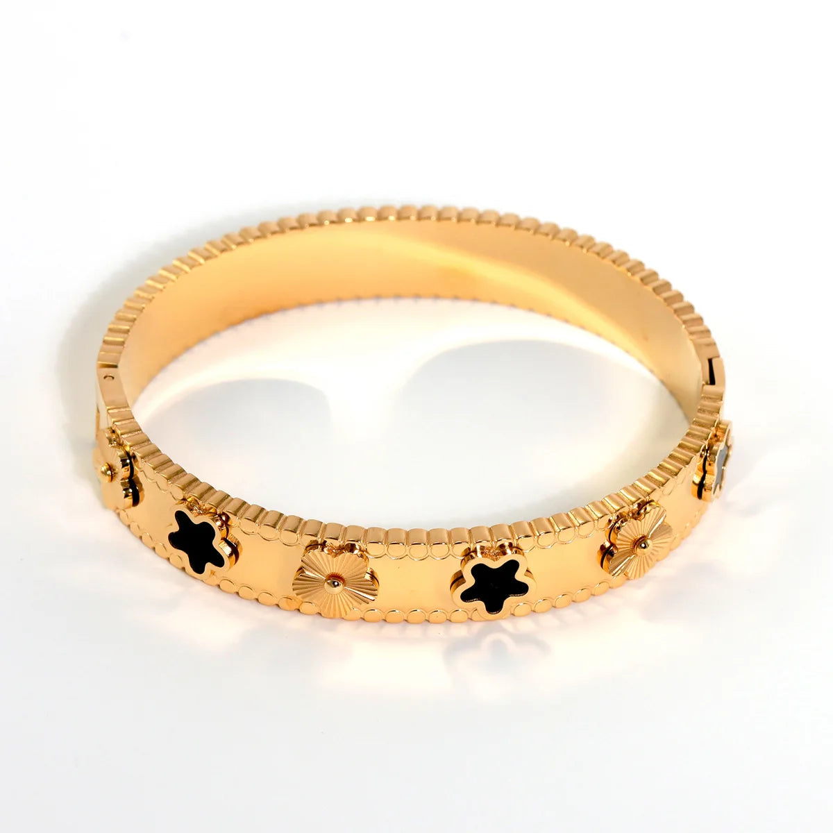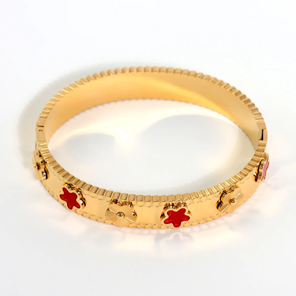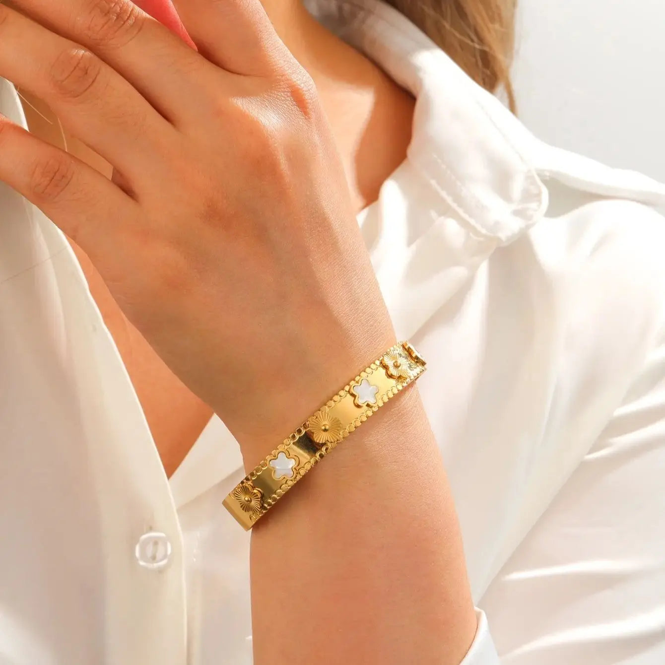 This stunning 18k Gold Plated Lucky 4 Leaf Clover Bracelet brings both luck and style to your wardrobe. Crafted with high-quality materials, this bracelet is a symbol of good fortune and prosperity. Its elegant design will add a touch of sophistication to any outfit, making it a must-have accessory for any fashion enthusiast.