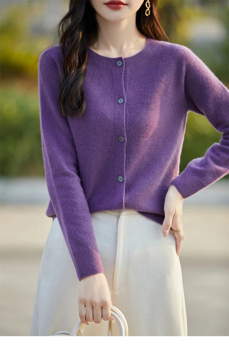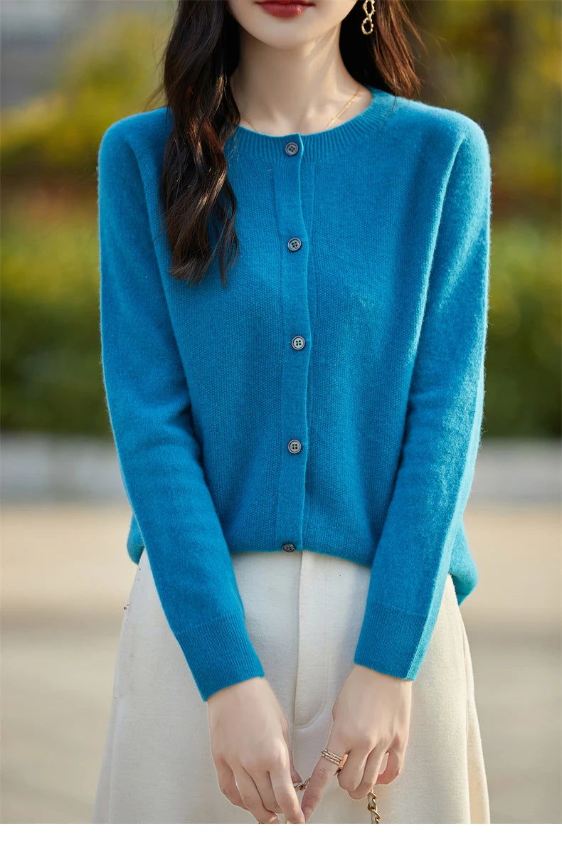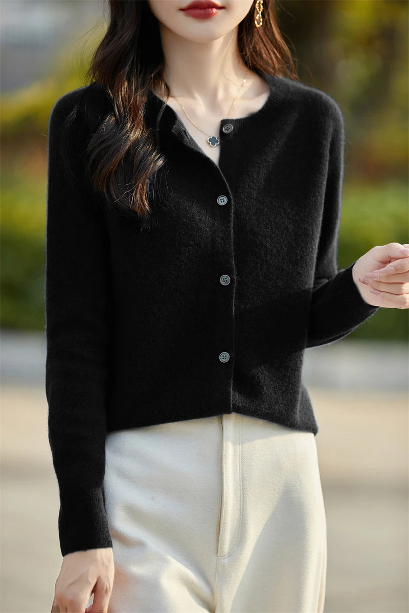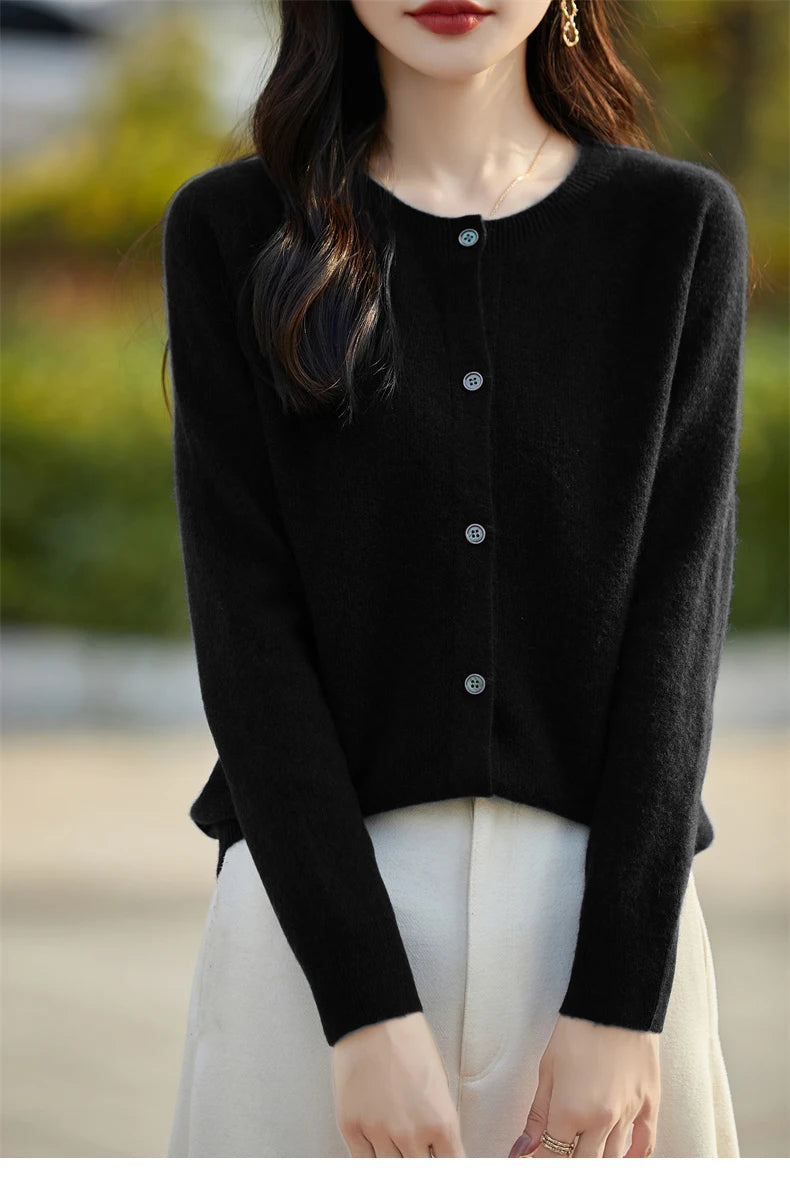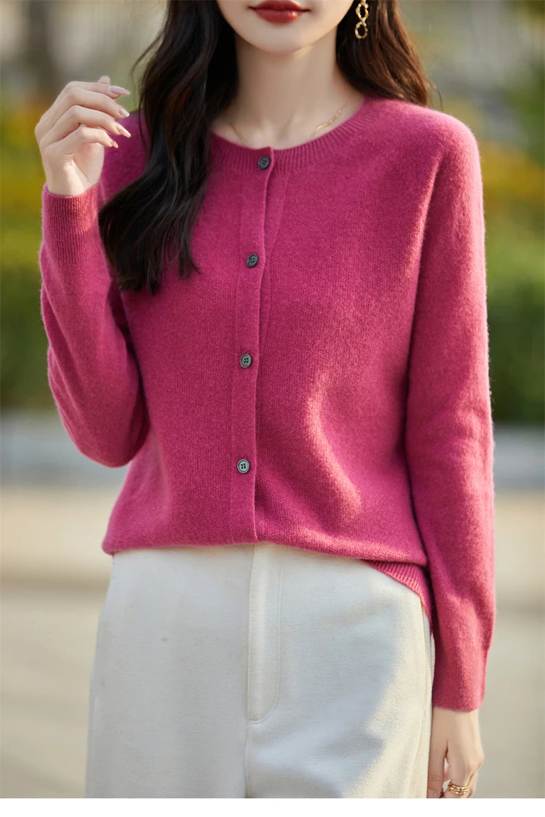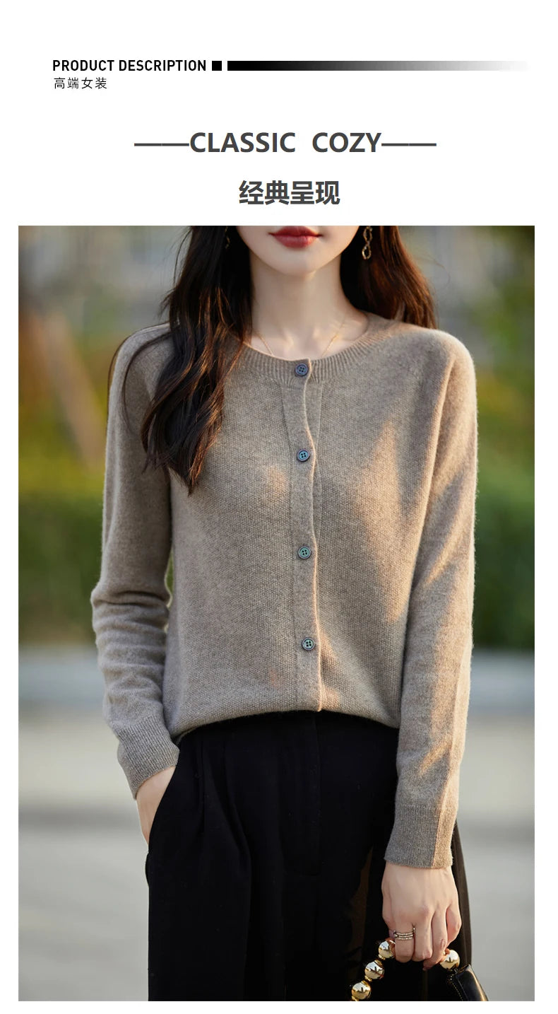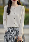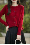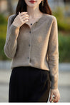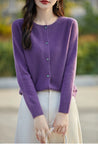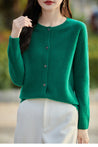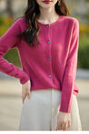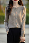 Get cozy in this Soft Wool Cashmere Blend Knitted Round Neck Cardigan!