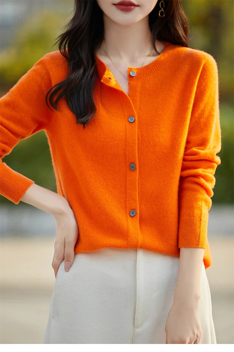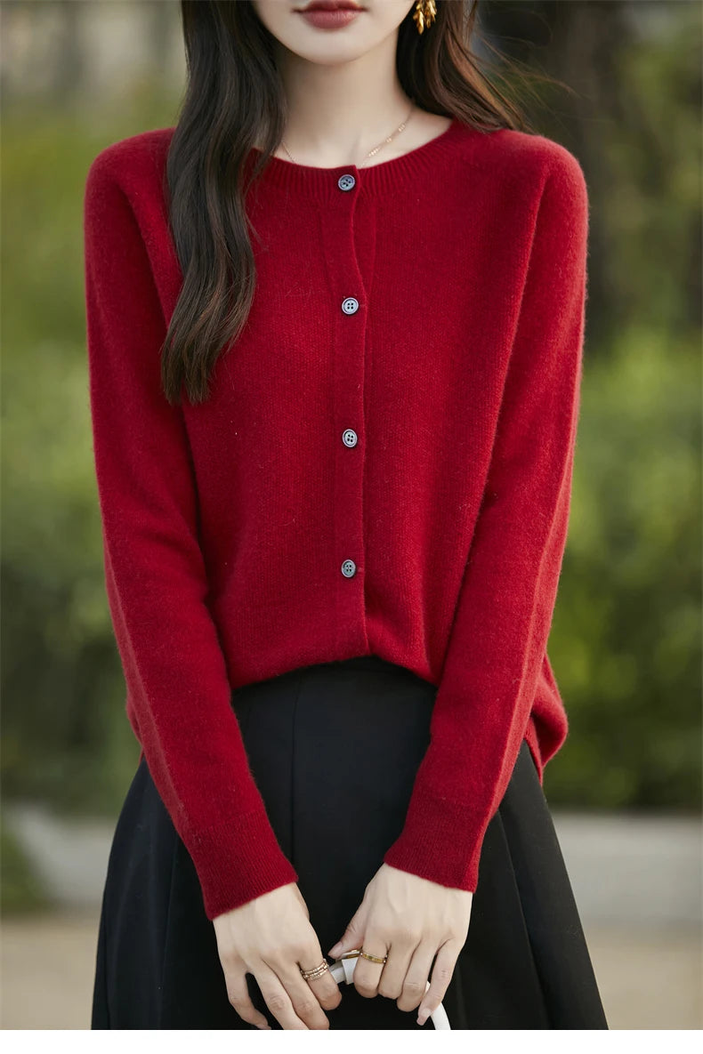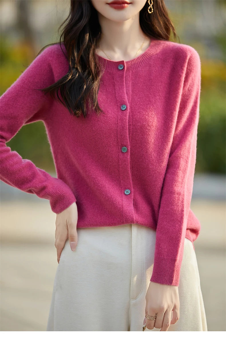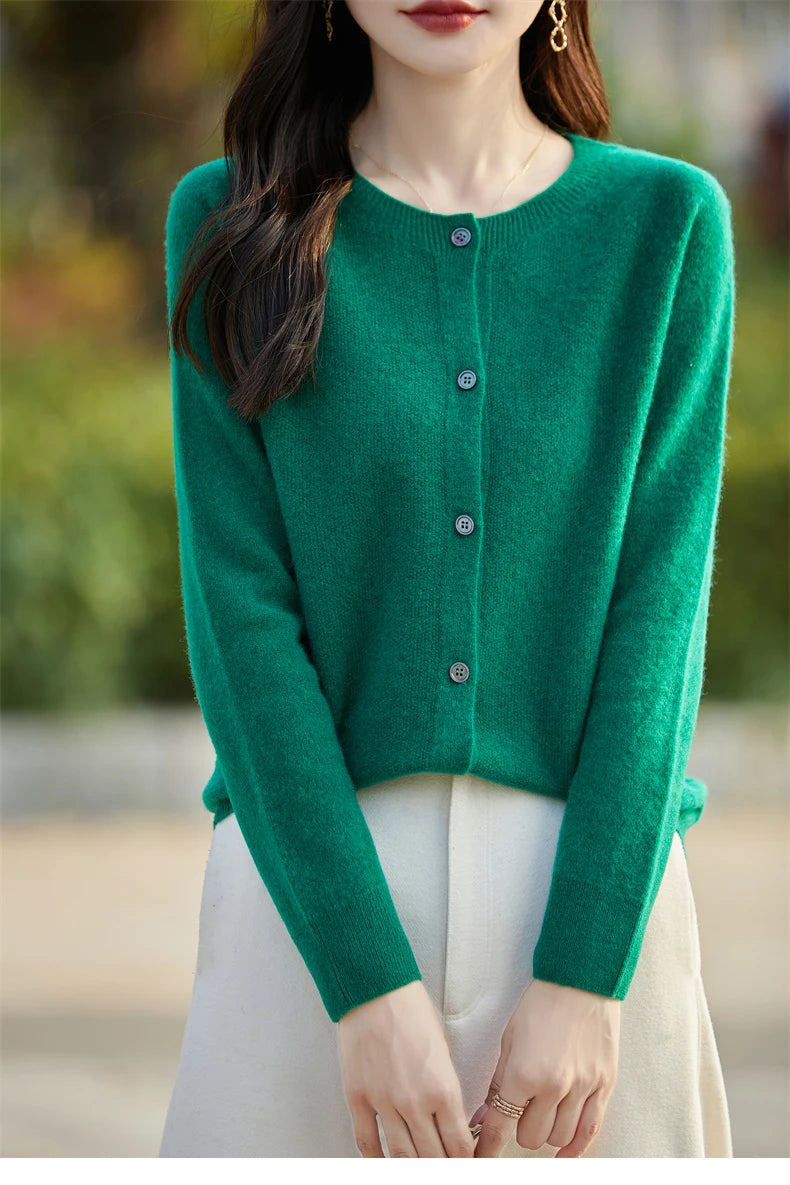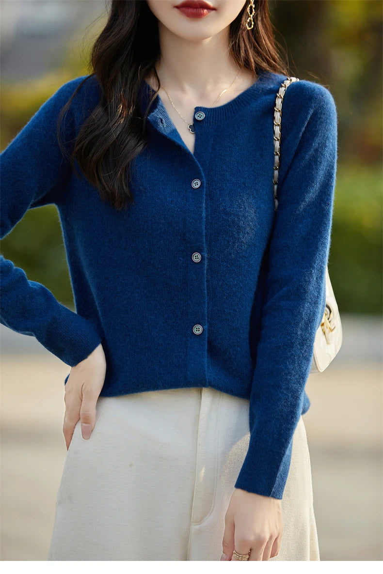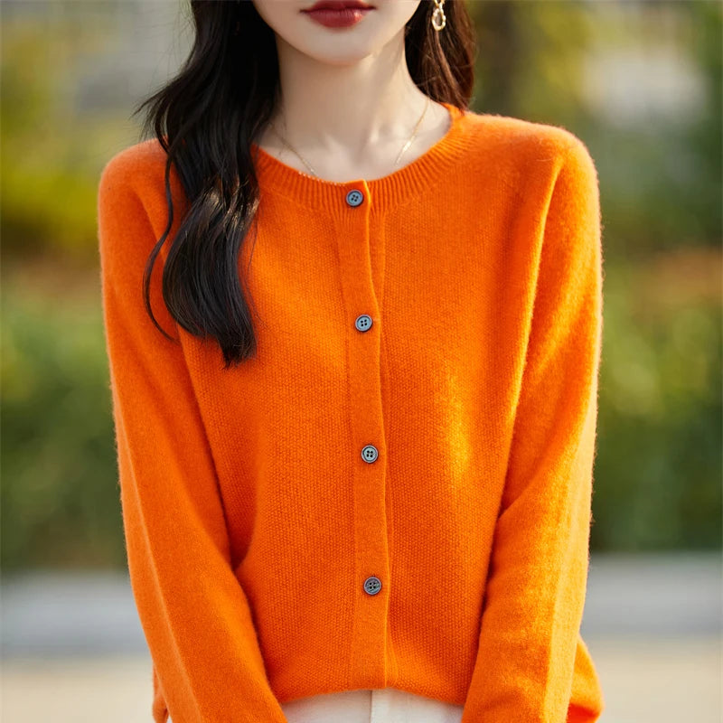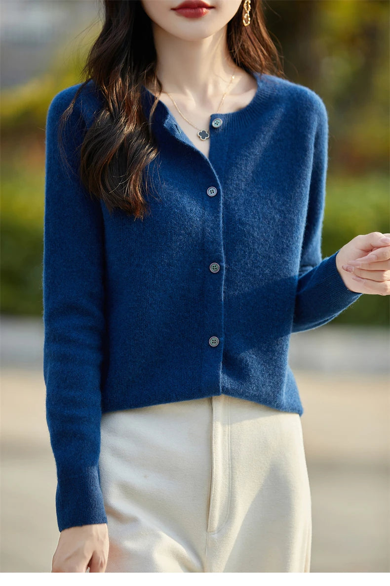 Get cozy in this Soft Wool Cashmere Blend Knitted Round Neck Cardigan!