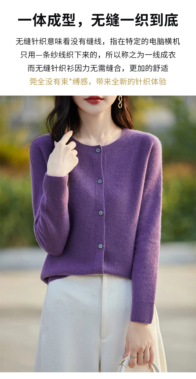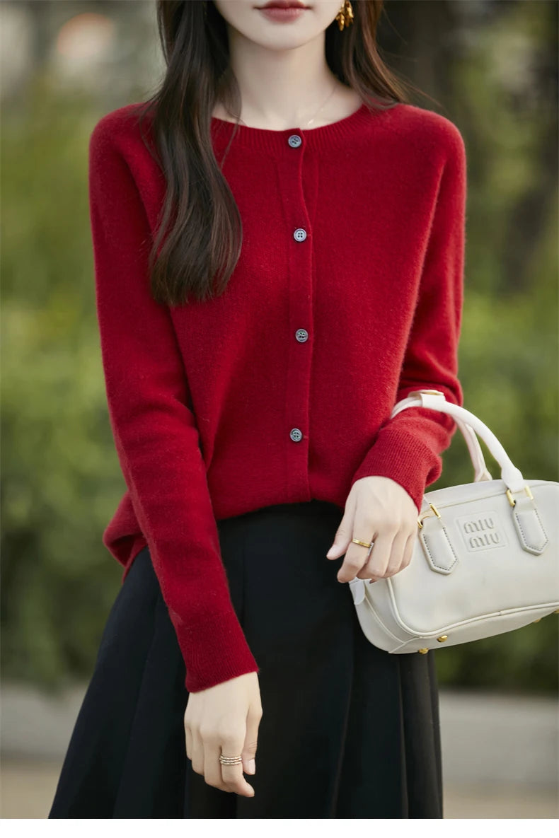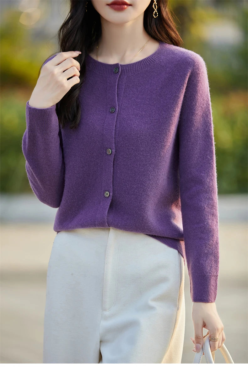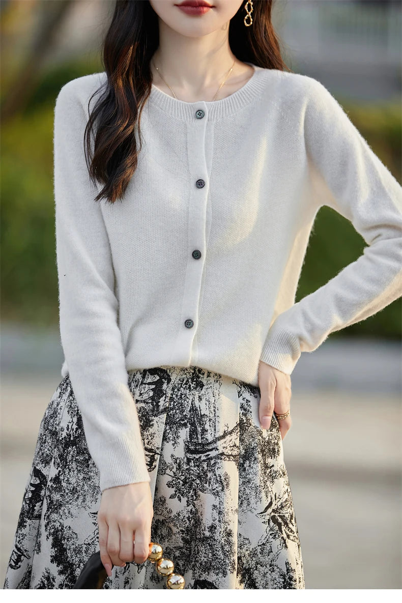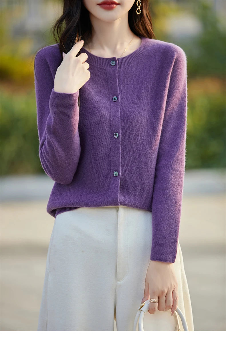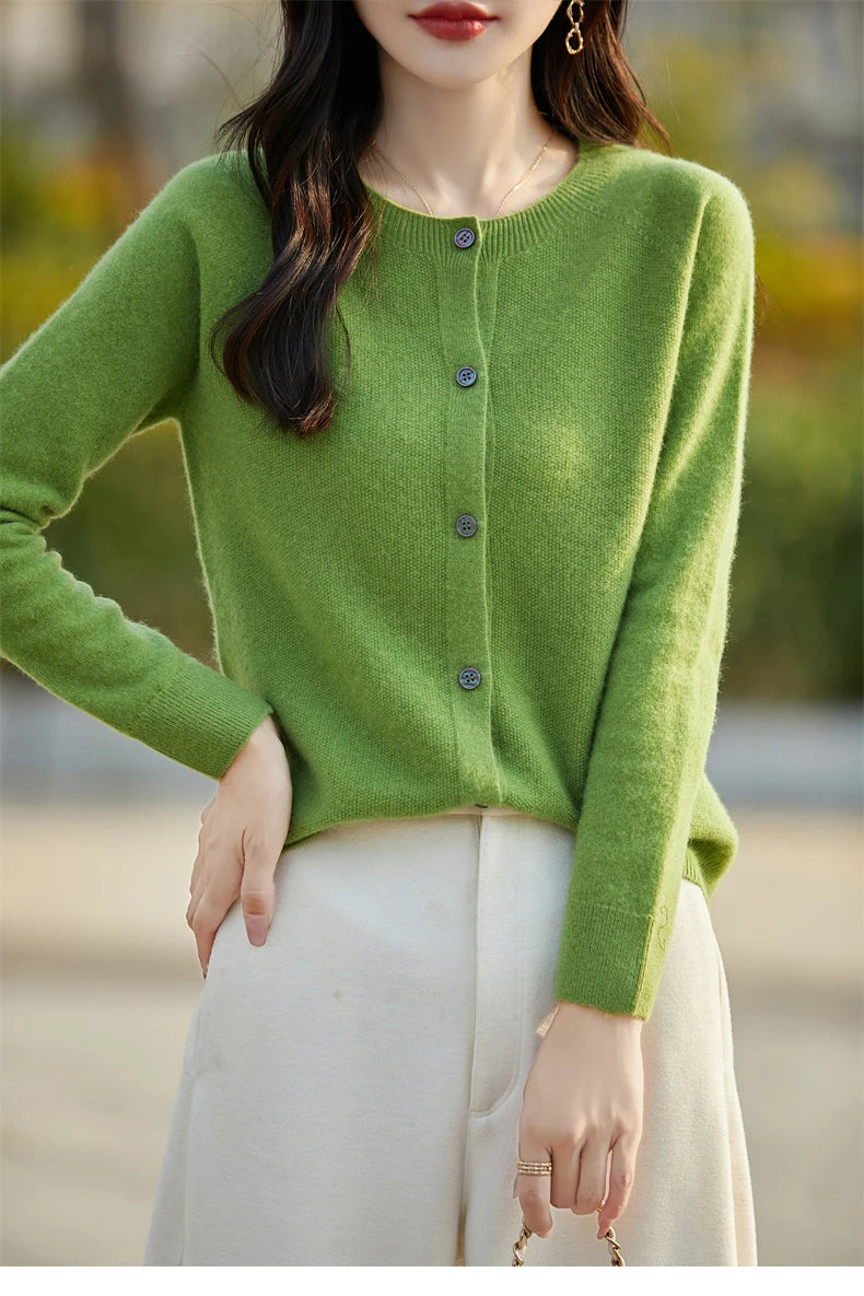 Get cozy in this Soft Wool Cashmere Blend Knitted Round Neck Cardigan!