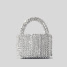 Fashion-forward Acrylic Bucket Handbag: Medium-hardness with no lining. Available in large silver and small silver. Features sandwich zipper bag. Stylish elements include beads, hollow design, and tassel. Perfect for daily wear. Includes one shoulder bag.