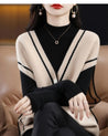 Perfect for any occasion, this versatile piece can be dressed up or down. With a flattering V-neck design and soft knit material, you'll feel stylish and comfortable. Don't miss out on this wardrobe essential!