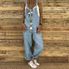 The perfect addition to your wardrobe, this long-sleeveless denim jumpsuit for women is both stylish and versatile. With its flattering design and comfortable fit, it can be dressed up or down for any occasion. Stay on trend and effortlessly chic with this must-have piece! Available in a range of colors including black, khaki, sky blue, dark blue, burgundy, and grayish white, you're sure to find the perfect hue to suit your style. Complete with convenient pockets and a loose waist, this jumpsuit seamlessly blends fashion and functionality for a look you'll love.