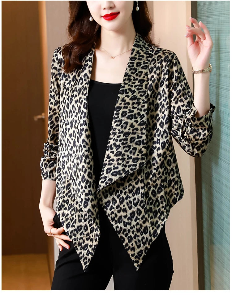 Why look dull when you can enhance your work look with an upper like this one! This edgy jacket is cut into a loose silhouette and adorned with the classic Leopard print throughout. It comes with three-quarter sleeves and a turn-down collar and cut into an irregular hem that brings out the edgy look. Step out in confidence, order yours now!