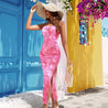 This elegant dress is made of luxurious milk silk, providing a slim-fit and comfortable feel. The delicate spaghetti straps add a touch of femininity, while the chic floral print and split design showcase your unique style. Perfect for any occasion, this dress is sure to turn heads and make you feel confident and beautiful. Pattern: plants and flowers