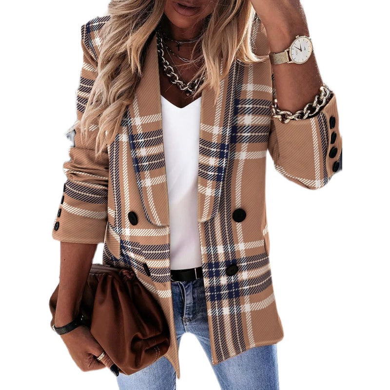 A boss-babe like you deserves the Posh & Pretty Blazer in her wardrobe. It is rendered in a versatile khaki plaid print that pairs well with many different looks, featuring a classic double-breasted design with shawl lapels and full-length sleeves with buttoned cuffs. The flap pockets add to the overall style. Classy and chic, be sure to rock with a white tee and denim jeans. Shop the style now!