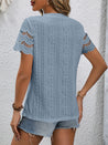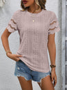 Be effortlessly chic with our Eyelet Embroidery Round Neck Short Sleeve Top!