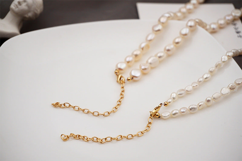 Transform your look with this Freshwater Genuine Baroque Pearl Necklace Clavicle Chain. Experience the elegance of genuine pearls draping your neckline, adding a touch of sophistication to any outfit. Make a statement with this timeless piece, perfect for any occasion.