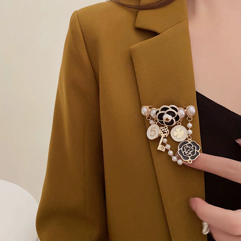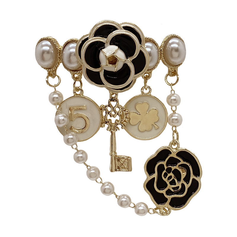 Made with stunning black pearls, this brooch adds a touch of class and sophistication to any outfit. Perfect for any occasion, it's a must-have for anyone looking to make a statement with their accessories. Exude confidence and style with our Black Camellia Pearl Broach!