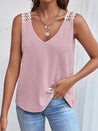 Indulge in effortless style with our Lace Accent Waffle-Knit V-Neck Tank Top. This top features delicate lace shoulder straps and a sheer lace detail, elevating a simple waffle-knit design. Whether dressed up or down, its opaque fabric and no-stretch material provide comfort and confidence. This tank adds a touch of feminine charm to any outfit. Upgrade your wardrobe today!
