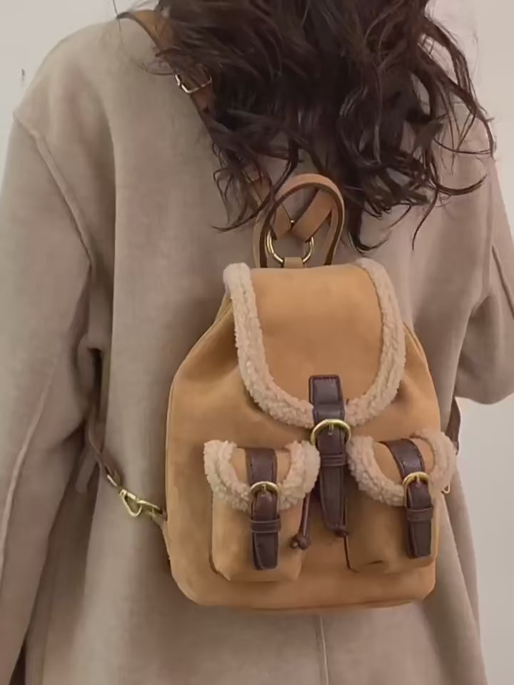 Stay warm and stylish on the go with this Warm Lamb Wool & Suede Backpack. Made with cozy lamb wool and durable suede, this backpack is perfect for any adventure. Keep your essentials safe while staying warm and looking cool.
