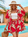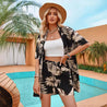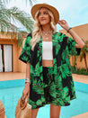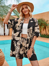 Get ready for summer in style with our Leafy Print Casual Short Sleeve Shirt Top and Drawstring Shorts!
