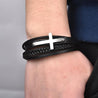 Show your faith with this stylish bracelet with a multilayer design crafted with genuine leather and a stainless steel cross charm. The perfect way to add a touch of faith to any outfit while staying on trend. Show your devotion to your beliefs with this unique bracelet.