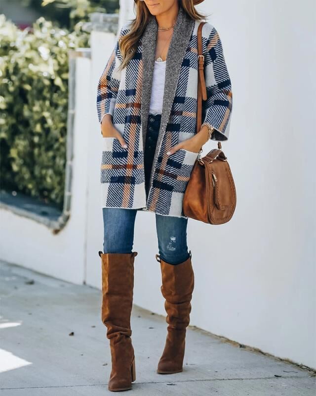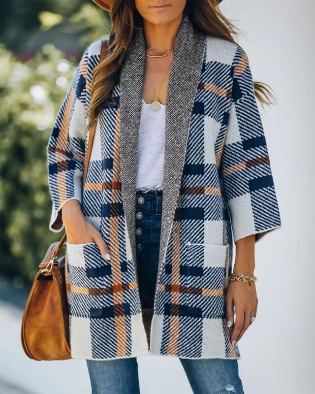 Looking nice and feeling comfy is easy with the Perpetual Chic Jacket. It wraps you in the cosy warmth and features a classic plaid pattern throughout, shaping shawl lapels and three-quarter sleeves. It is cut into a relaxed silhouette with an open front that provides ease of wear, making it perfect for layering over many different outfits. The patch pockets on the front are an added bonus.