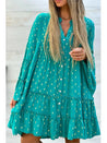 With its flattering A-line silhouette and knee-length cut, this dress is both comfortable and stylish. Featuring a flare sleeve and a v-neckline with button detail, this dress is perfect for any occasion - from a day out with friends to a romantic dinner date. Made with high-quality materials, our dress provides the perfect combination of comfort and style. Don't miss out on this must-have bohemian piece for your wardrobe!