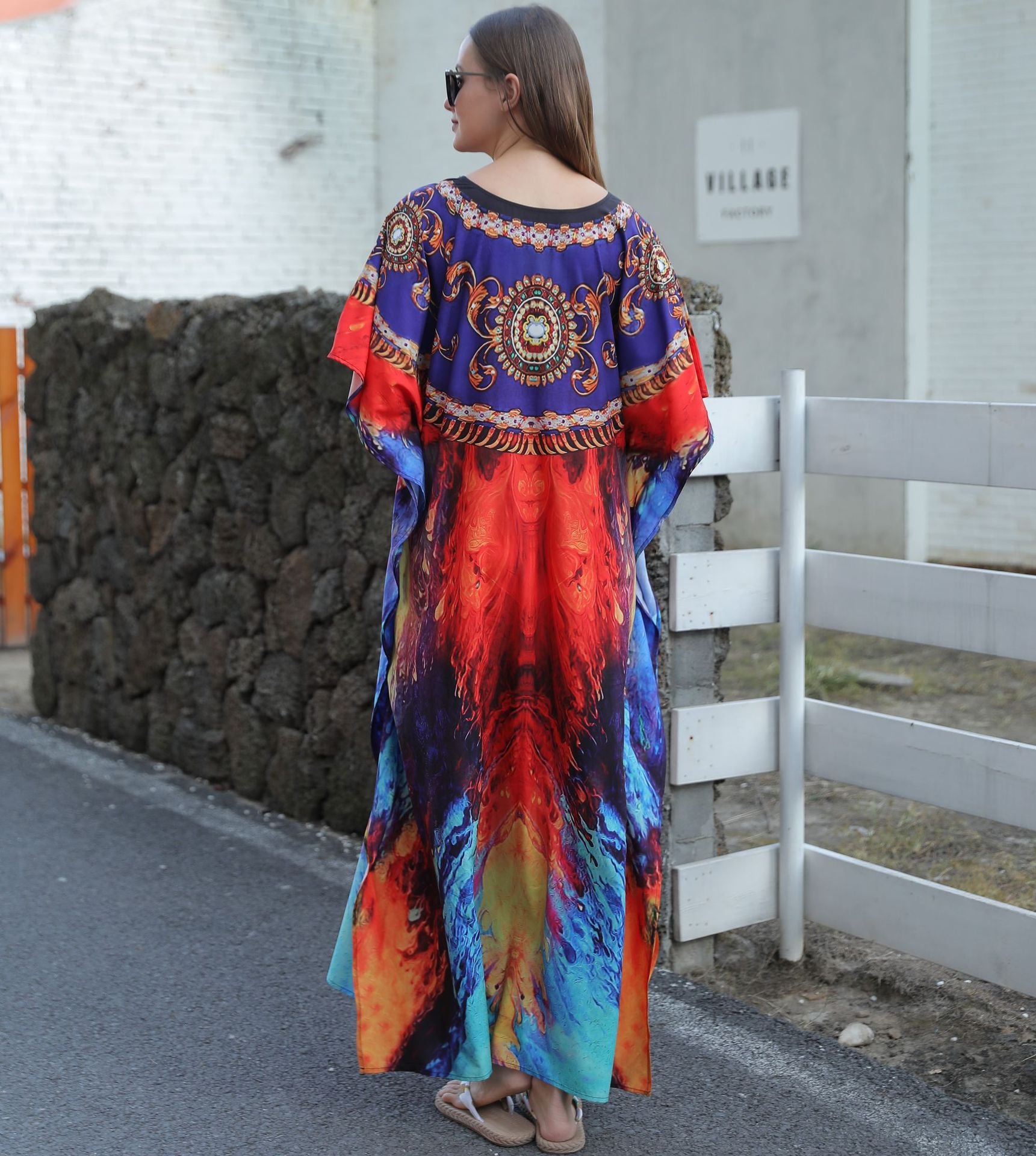 This Plus Size Kaftan Beach Cover-up is perfect for your summer beach days! With a loose and flowy fit, it provides comfort and style. Easily slip it on over your swimsuit for a chic look. Relax and enjoy the sunny weather with this must-have maxi dress!