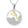 Sea Dolphin Pendant with 925 Sterling Silver Box Chain 18K Gold Overlay Adorned with Sparkling CZ Gemstones.