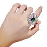 Experience the beauty and versatility of this Square Cut Emerald Flower Petal CZ Ring. Its adjustable size means it fits all, while the stunning emerald & flower design adds a touch of elegance to any outfit. Embrace style and convenience with this must-have accessory!