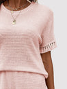 - Two-piece set: Round neck top and shorts