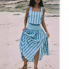 Unleash your inner retro style with our Vintage Vibes Blue Striped Swing Skirt! Made from breathable ice linen, this sleeveless skirt is perfect for twirling around with its large swing design. Transport yourself back in time and add a touch of nostalgia to your wardrobe! Perfect for any occasion, from strolls along the coast to chic summer soirées, this skirt exudes laid-back elegance and coastal charm. Step into the essence of vacation style and elevate your wardrobe with this exquisite piece.