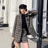 Wrap yourself in style with our Vintage Woolen Plaid Jacket Shorts Two Piece Suit!